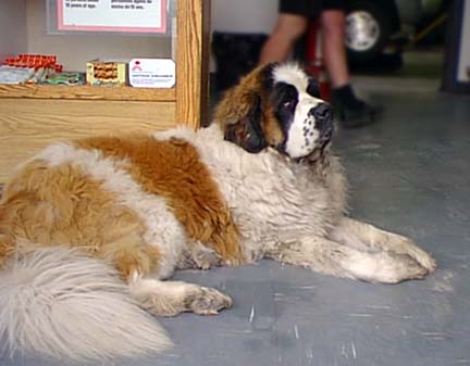 As with all St. Bernards he is on the big side. Customers come and go, step over