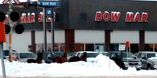 The farm next to town that serves as a motel for horses had a minor problem on Monday when several inmates decide it was time to check out Tisdale and off they went. Right away you can see the problem with horse sense, what did they think they would do if they left a place were they were fed, watered and cared for? Perhaps they would vote conservative, well anyway, they made a break for it and got up to Bow Mar. |