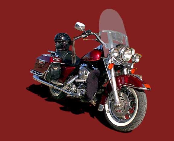 ![]() Like most Harley Davidson owners the machines are highly customised with a huge variety of after market trim and gadgets added to the basic motorcycle. I noted to the owner that perhaps he definitely had enough tail pipe there and he began showing me the various additions he had made, these are shown off in this picture and the one below which shows a tailpipe and an after market light. As I was walking away I spotted the front fender ornament seen on the top of this page and got a close up of this dubious enhancement. The owner proudly explained that it was wired into the the system and the eyes light up. |