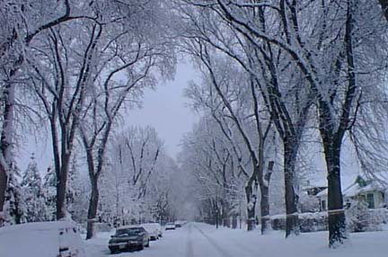 Not frost but light fluffy snow with calm winds, this view is of a tree in our front