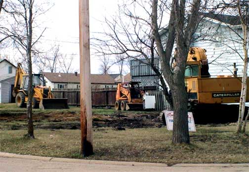 This is a block east of the Beehive hotel as the last older house in this neighbourhood vanished today and work began on a basement for a new dwelling.