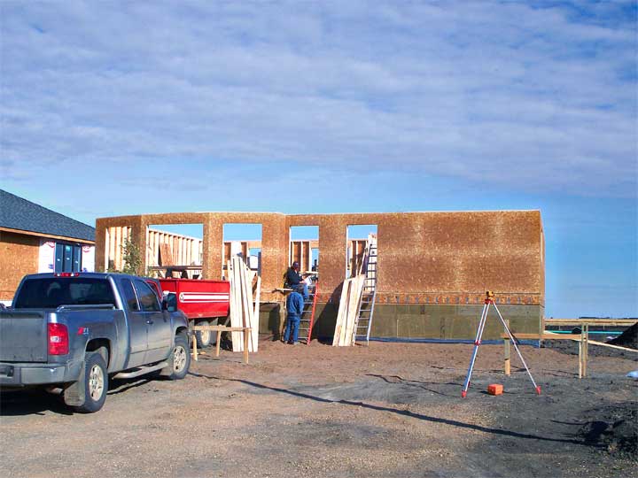 The basement complete and the crew are installing the main floor in this picture (right) taken on September 8th. The RTM that was moved in earlier this week is right across the street from this project. The construction framing work seems to go quickly, it is the electricians, plumbers and dry wall trades that are really pressed on keeping up. |
