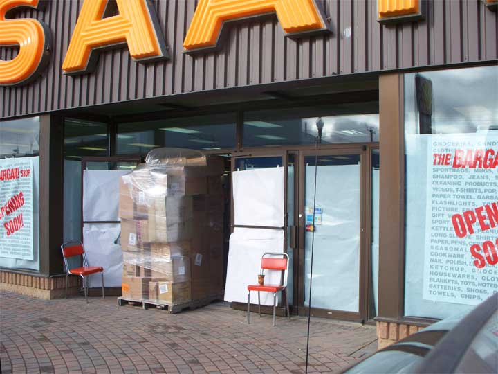 It looks like there are about five to six employees working at what is to become the new Bargain Shop in the former SAAN store. The the windows are papered over and signs that say it will be opening soon there has been no indication when soon will be.