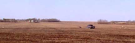 This field justSouth of Tisdale opposite the Louis Dreyfus terminal is actually ideal for spring planting and germination. With the trash cover on this stubble field the soil is actually damp. However, not everyone has been this fortunate some fields had been worked up and one of their neighbours have seen their quart section of planted canola distributed by the high winds and they will have to repeat the planting process. I wonder if the folks at Monsanto will be after those seeds that will be soon to germinate miles from the site planted. In preparation for planting this field had been treated with Round-up to suppress weed development, rather than disturb the soil with |