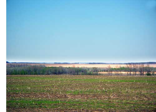 As I drove south to see how things were I noticed at least one field had the distinctive pattern of spray equipment and in another field there was the distinct growth pattern of weeds but in many others this year's crop has broken through. |