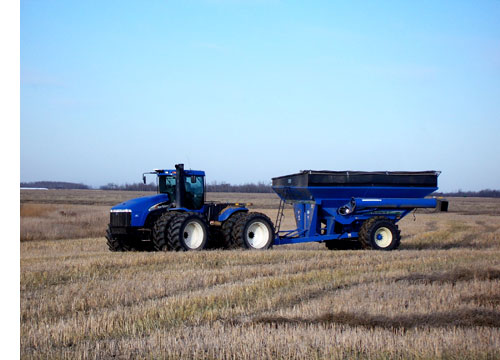 It was interesting to see the coal black Canola seed pouring into the grain tank (below). |