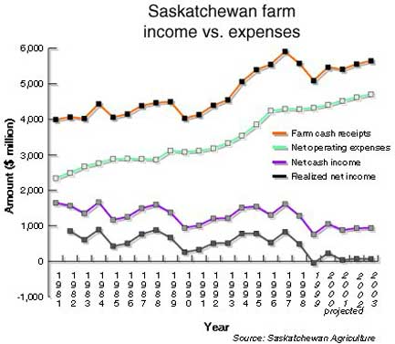 1999, net farm income declined by C$600 million over the same period instead of rising