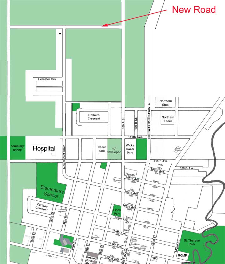 Construction is well underway on a new road that will provide access to the new developing area on the northwest corner of Tisdale. Service trucks and traffic into and out of the area had to trundel down Newmarket to get to and from the Forester Crescent area. This new road that follows the electric line north of town will open the area up.