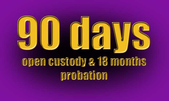 | Upon conviction the prosecution asked for a six month sentence, some in secure custody, the defence three. The presiding judge, imposed 90 days in open custody and 18 months probation. | |||||||