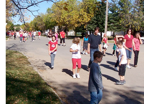 Complete with banners and some students in costumes it was more than just a stroll around the block this was a march. Everyone from kindergarten to grade five were on the street as they went by our house. I was just leaving the house at the time and was startled to see the street full of smiling students. The school stages this walk every September but surely this must be the best weather ever for the outing. It was 22ºC with a light fall wind that just made you want to be involved. |