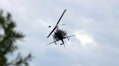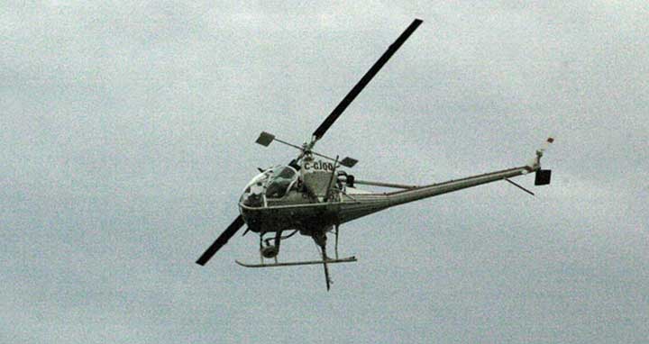 ![]() Andrew and I were working online this morning using voice over IP which has superior clarity and I noticed a steady sound of an aircraft near his appartment. Of course Andrew had heard the sound long before me and dashed to a window and shouted to me that there was a Bell 47 overhead. "It sounds like I am an airport" he shouted to me through his computer connection. "Heah, I'll get a picture." A minute or two later these |