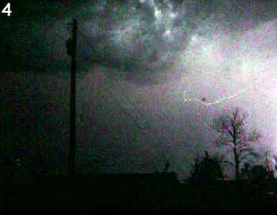 These images were created during a spectacular electrical storm from Jo Lukinchuk's farm window Monday August 7. Catching lightning is really a difficult task with a still camera, in fact the length of time of the discharge is such a small moment of time it is humanly impossible to depress the shutter button to get the scene. Most photographers use cameras with a manual shuttle and simply hold the shutter open to capture the spectacle but for most of us using modern point and shoot digital cameras that method is just unlikely to get any success. What Jo did was recorded the event with a video camera then using her digital still camera took pictures of the video to create these images. That extra step of having to use the digital camera is just a technological limitation. If you are using a digital camcorder you can use a firewire connection to your computer and download your video into the computer and then using QuickTime Pro select the individual frame from the video. Sounds complex but it is really pretty easy. If you have video, on any video camera and need a still made contact me and I will be happy to help you capture the image so that it can be made into a printable image. The limitation is that you can not produce a print much larger than 5 x 7 as the video camera's resolution is not designed for this sort of application. We began doing this in 1993 and actual used a convention VHS video camera to produce digital student portraits of all the students in Cumberland House's Charlebois School. Lightning has been pretty much a mystery until this last thirty years or less. Though Benjamin Franklin explored the power of static electricity discharges it was not until modern technology allowed scientists to sort out some of the details. The most remarkable discovery was that most lightning is a discharge from cloud to cloud as the potential electrical field of the atmosphere establishes. A ground strike is really fascinating because it does not come down from the clouds but rather shoots upward from the surface. Jo's images are pretty terrifying and the noise that seems to go with these things and the emotional stress associated with the surprise can be pretty unsettling. But for me lightning took on a whole new dimension over the water of the British Columbian coastal passage when I wandered into a thunderstorm with my Cessna 182. I will not go into the details of my stupidity but I discovered that instead of skinny snaking lines of light lightning is much more like freight-train sized pipes of energy. Shocking! What is surprising is not the power and awesome beauty of an electrical storm but rather the simple fact that so many of us live to tell about the experience. As we can see Jo and her family survived this one and I and my 182 lived on to fly another day just as several billions of us all around the planet are not fried by these atmospheric shorts. Let's consider some safety precautions: 1. If you see someone's hair starting to stand on end or feel the hair on your arm bristle get into some kind of insulated shelter. Cars and trucks are good since they are mounted on rubber and that insulation will prevent injury from a discharge. 2. Golf course, soccer field, baseball fields are all deadly. They are open space and with nothing tall enough to act as a conduit for the discharge you and your playmates on that playing field become crispy critters. 3. Trees are wonderful things, in a rain storm they can reduce the amount of rain that hits you and deflect hail from causing injury but with a potential electrical storm in an area trees are ready to send and receive, standing under a tree when it is involved in an electrical interaction will result in an immediate visit to St. Peter. 4. In the event of you being conscious after a strike involving someone going down get to work immediately CPR even on a very badly damaged person can save an otherwise lost life. Nice pictures but take from inside, okay? |