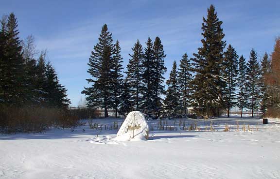 ![]() When I got out of the car to catch the picture above looking West I could see the sun reflecting off the Louis Dreyfus terminal. This farm below has erected a large rock to identify their yard but the snow clings to it and the yards spruce shelter belt as though plastered their in place. |