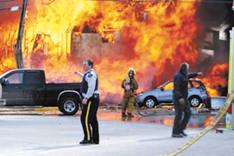 On location at the time of explosion were Mike Lungul of Nipawin, an employee of Jack Boxall Trucking, and Lorry Riemer of White Fox, the owner of a trac-hoe 210 who was preparing the site for future development.