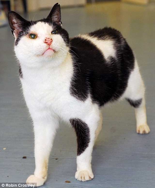 And from these pictures the elderly moggie looks like he has plenty to purr about after the lens have transformed him from a squinting cat unable to see where he was going.
