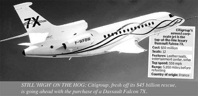 Even though the bank's stock is as cheap as a gallon of gas and it's burning through a $45 billion taxpayer-funded rescue, the airhead execs pushed through the purchase of a new Dassault Falcon 7X, according to a source familiar with the deal.