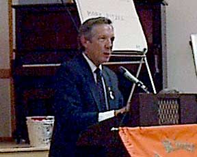 | was picked up and the band knocked off a song. The folks who would do the counting left the area and rather than hold a recess to await the results, the evening moved along quickly and Cory Fengstad made an eloquent introduction to Premier Lorne Calvert, (seen below |