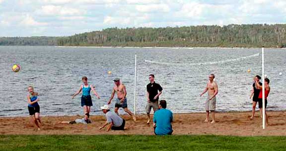 ![]() Last Wednesday, after coffee, I watched the Park crew de-weeding the swimming area. Pete and Wayne were in the boat (at least, part of the time) pulling a blade, which uprooted the weeds. Frank and Riel were in the water up to their armpits, untangling the weeds from the blade and pushing them to shore. Last phase would be to fork up the seaweed into a cart and haul it away. I’ll bet they were ready for coffee when they were done. I wonder if Pete ever got dunked? Charlie played it safe and harrowed the beach. |