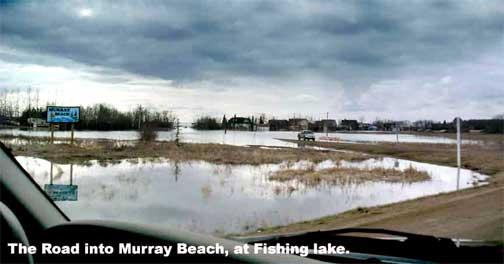 Doreen and Marg went to an auction sale at Ituna today. They report no problem with roads, though lots of soft spots. Flooding was extreme at Fishing Lake so Doreen stopped to take some photos, until an impatient truck driver started blowing his horn.