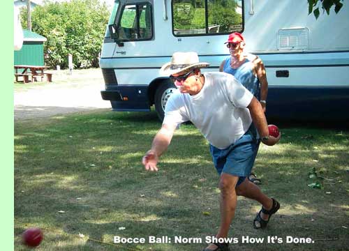 We just got home from a motor home outing with the Saskatoon Sunseeker Sams, the travel club we joined this year. We went to Prince Albert and stayed at the Prince Albert Exhibition Campground, right across the fence from Wal-Mart. There is a long row of very tall black poplars along that fence and they gave shade to all our activities. We had a wonderful time, mostly just visiting with the most congenial bunch of people you could ever expect to meet, but also playing Bocce, Blongo and Whist.