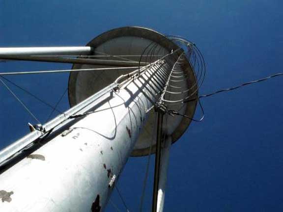 Perhaps this structure with its series of circles and cylinders is an expression of structural harmony, a composition of a single round structure with a curved base held in place with five vertical cylindrical objects and braced using the power of three in triangular tension. The repeating hoops around the ladder, installed for safety but aesthetically repetition of the circular theme.