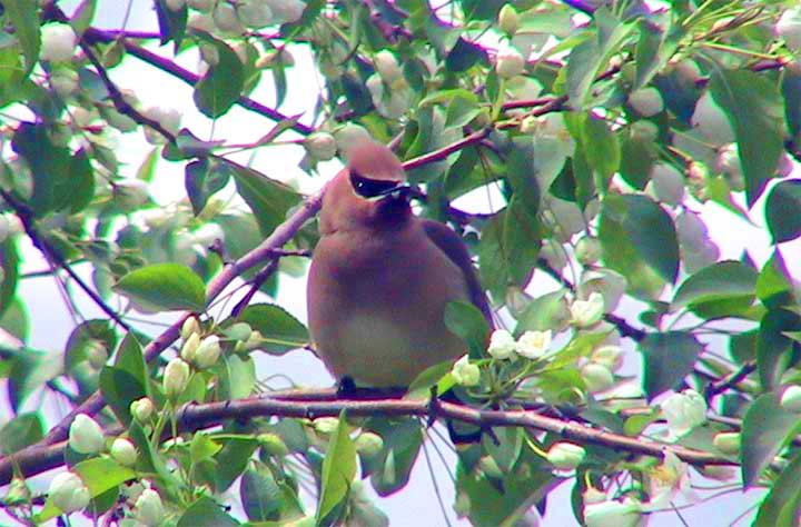 Tisdale : So far a group of five Bohemian Waxwings have been behaving themselves in our back yard and we have pictures of these boreal forest dwellers who love to eat fruit, but today, flowers.