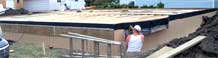 Tisdale: The owner of this new house has opted for a house without a basement and a wood foundation was placed on the cement footings and the structure is now getting its floor installed.