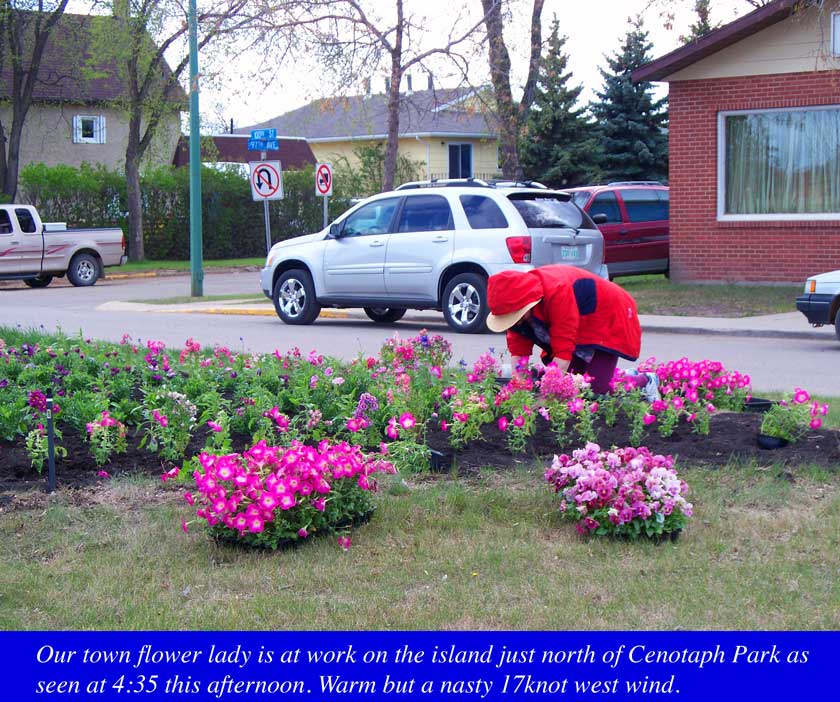 Saskatoon: All four seasons in one week have put all Saskatchewan people to the test but Gerald has discovered some exotic yellow flowers and even weeds growing in some Saskatoon lawns. The Crawfords have a new patio and a fuse problem resolved problems with the motor home. But life stands still for garage sales.