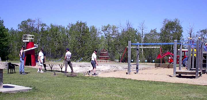 A volunteer gang working on refurbishing the Kinsmen Park play ground, Sunday at