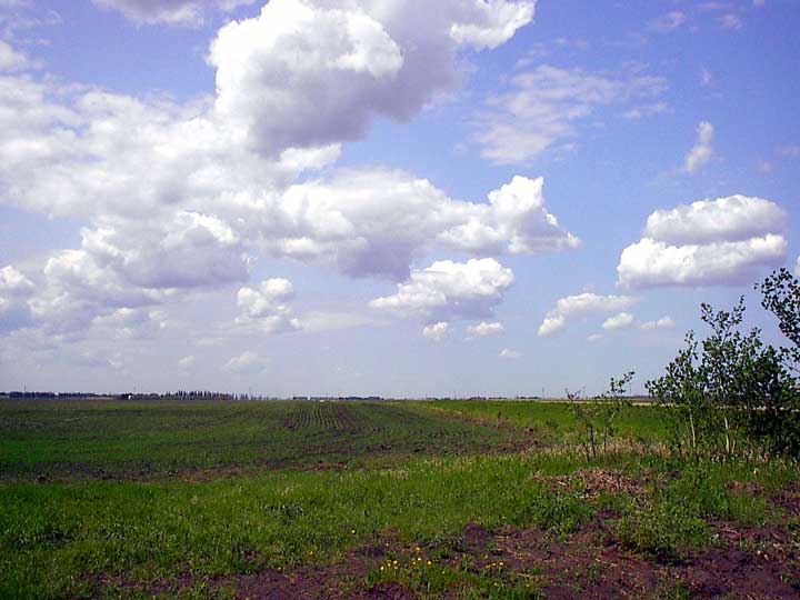 Looking West across an emerging crop just North of Tisdale today at noon.