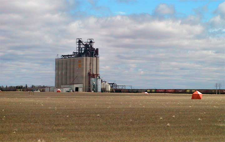 Three rows of cars lined up to be filled as this elevator is making room for farmers