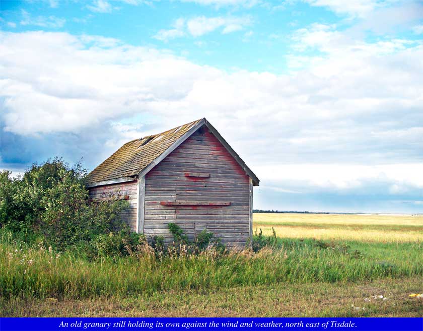 Tisdale: Harvest got underway late last week and today everyone is in full "let's get it done" mode. Three combines in this wheat field north of town this afternoon and the canola field across the road all swathed. Meanwhile, the Co-op's yard full of metal grain tanks is completely empty.