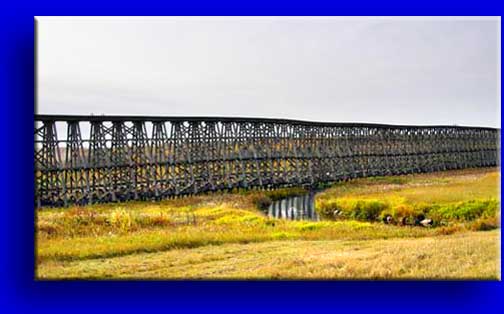 Old wooden railway trestle by Highway # 41 and near Meskinaw Saskatchewan Built, owned by CNR and has not in use ( for many years ). I believe that even the rail line has been abandoned as well.