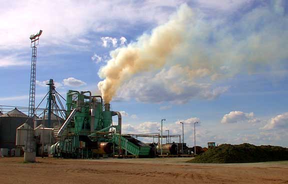 The nominal operational goal for Tisdale Alfalfa Dehydration Plant is to begin harvesting and processing field alfalfa on June the first each year. Since we began reporting in the spring of 1998 the plant has fired up on June 6th, June 12th and on other years right in that first week of June but this year the unusually cold and dry growing conditions have retarded the development of the crop and it was only Friday morning that the first cut of the crop year 2002 began with processing beginning mid afternoon. Though this has shortened the production run for this year there is still hope that rain and warm temperatures will bring on health growth and provide the product needed for this industry. At one time Tisdale and the many other alfalfa dehydration plants had all of there production sold to Asia but in the past two years the domestic market has expanded as the Asian market all but dried up entirely.Asian buyers are back demanding production and now less than half the producers are still in business. The low prices have moved farmers who were formerly selling their alfalfa for dehydration to look for other better markets and many continue to grow alfalfa but have switched from fodder to seed production. The Arborfield dehydration plant was having trouble finding enough farm production to fill their needs this year. In other years the dehydration plants have relied upon bales for some of their products but this past year's production was down and baled fodder was being bought up by the drought ravaged areas from Pincer Creek to Southwestern Saskatchewan. No bales were processed in the fall of 2001. |