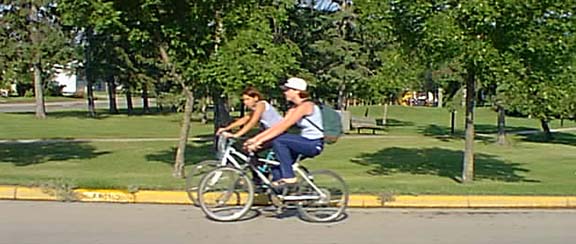 pass the Main street park. Last nights shower did not clear off the dust on the right passenger window of the FTLComm van so when I passed what looked to me like the Breakfast club my picture was a mess, so I stopped and took a quick shot backward. This group of people were glad to be with one another and having just emerged from the cafe it seemed like a nice way to start the day. |