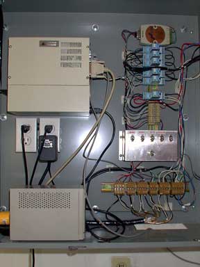 the farmer the proper mixture will see this systemand the use of liquid fertilizer expand even more when farm economic situations will become a little less tight. Harvest Valley sells seed, anhydrous ammonia and liquid fertilizer at is installation South of Tisdale. They have two field spraying rigs that are on the go constantly as well as two other fertilizer application systems which provide farmers with custom application. Anhydrous ammonia is widely used with continuous agriculture and cereal grains as it is applied in a gaseous state in the fall and spring. However, liquid ammonia products are becoming increasingly popular largely because of the Auto Blend system which makes the product easy and much safer to handle. Liquid ammonia is only 28% compared with the full strength gas application, but because it is so much easier and safer to use, many are predicting that it will become just as popular as banding with gas. The control panel for the Auto Blend system is seen in the picture on the right and includes a uninterrupted power supply to handle any glitches in SaskPower thus protecting the computer and keeping the system operational. The installation of a liquid fertilizer system is extensive. Harvest Valley had to create the dike containment system with a thick plastic liner then covered with pea gravel to insure the safety of handling these chemicals that can get out of the tanks and would contaminate the ground water. The picture below illustrates the extent of this installation with its system of tanks and on the right hand side of the picture, the input lines for refilling the various liquid fertilizer tanks. |