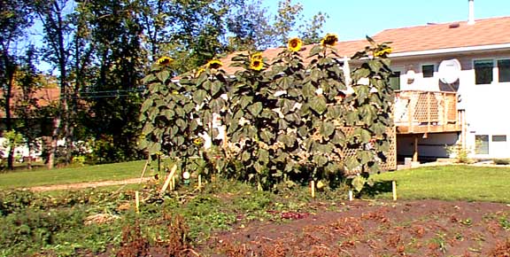 ![]() These two yards sit side by side across the street from Art's Autobody. Each lot is bigger than most lots in town and this gives the owners the opportunity to have truly big gardens. Though I have admired them before and show you pictures of them this morning I had to stop and look around. Those sunflowers are enormous. They told me that neighbours had called earlier in the year wondering what kind of trees they had planted that grew so quickly. The excessive moisture lately has been tough on the cabbage as these head had cracked open. Their potatoes have finished their life for the year and they have already harvested their corn and a good part of the garden has been cleaned up. |