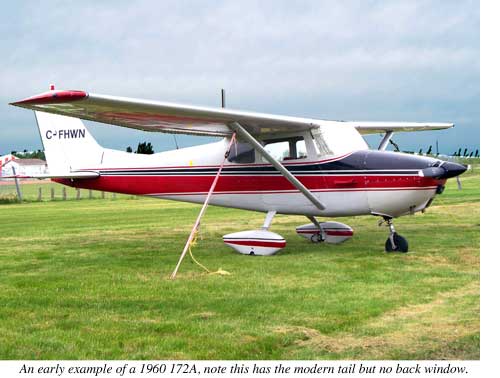 The 170B can handle a fair load and is a true cross country airplane many in Northern Canada and Alaska are seen hustling around in the summer with floats. Owners of 170B Cessnas are an extremely loyal bunch largely because the thing flies really well and handles without many of the vices that make pilot wives widows. The aircrafts stall and spin characteristics make it one of the safest machines built and it will land on very difficult strips with few complaints. At the introduction of the 170B it sold for $8,295 and was advertised then in 1953 pretty much like a car. But today an average quality 170B sells for between $45,000 and $70,000. You will find some of the listings in the references of ones for sale. This 170B with its super paint job is regularly found in Prince Albert and besides the modifications to its exhaust system you will notice it has modified intake ports on the nose, a very nice modern spinner and like most aircraft today the antennas indicate that it has had considerable electronic upgrading. |