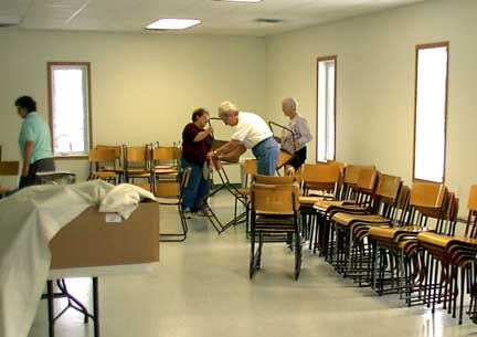 ![]() Cupboards have been installed since last week as well as this large beverage cooler. Of course there are still details to be finished up like some door and window frames but for the most part everything is in place to make the building more than useable. The plan is to use these older chairs for a while until the Centre can apply for a grant. The grant that will provide the Centre with new chairs can not be applied for at this time so until then the ladies are cleaning up the chairs by |
