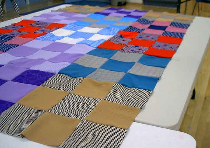 ![]() ago they were totally unsympathetic, just as the quilters in the Kelso living room were so long ago. As I watched them at work yesterday I was keenly aware of their attention to the design of each quilt. Just as I took the second picture on this page a lady carefully going over it spotted an error and whisked it off the table to remove and reposition a patch to complete the harmony of a design that will last for a very long time, giving comfort and warmth to people far into the future. More than a blanket, more than the individual pieces that go together to make it into what it will become, a quilt is a promise, a legacy and an enduring piece of work that embodies the many hands and the spirit of each individual who helped to make it this winter afternoon in 2003. |