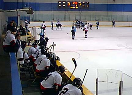 turned around. They have some good skating players and in the tradition of Hudson Bay can deliver a check but the quick defense of the Ramblers had them pretty well tied up in knots. Tisdale's rookies this year are a tenacious group with former PA "AAA" Scott Holmstol and former Trojan Ryan Turcotte, Jordan Spagrud and the most defensive forward on the team Jeremy Markwart. These young legs have joined the clean passing well organised and experience Rambler team and Ramblers could easily have put considerably more then the nine points that went on the score board while the Hunters |