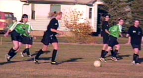 Evenly matched play at centre field and great kicking ability of the Hudson Bay goalie kept the pressure off for most of the game.