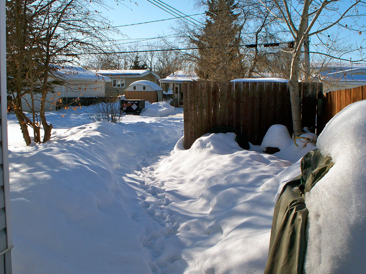 When I got back home I took a look into our back yard (below) and from the scene that you see there it looks like we have a way to go as far as spring is concerned but it also is apparent that we can expect to see a fair run off when all of that snow melts.