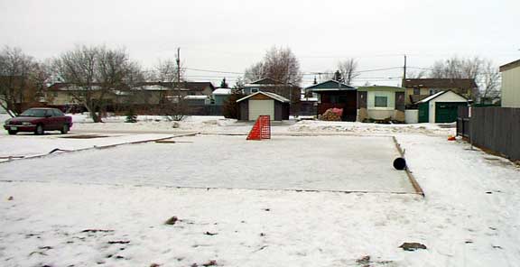 ![]() change but something humans and their activities have caused. The picture above shows a rather rare appearance by the crescent of the moon as it showed up during the night through the base of SaskTel tower seen here at daybreak this morning. Today it is dull and the wind that was fairly noisy during the night seems to be down a bit and not that harsh. Below is one family's hockey and skating rink on the North edge of town. This is a good thick pad of ice and the warm weather will have no negative effect on it as it will simply smooth out some of the cracks. This is a really good sized rink and a great place for kids to learn to skate and have loads of free fun. If you look close you will see this rink even has some halogen work lights set up on the right hand side of the picture to light the rink at night. |