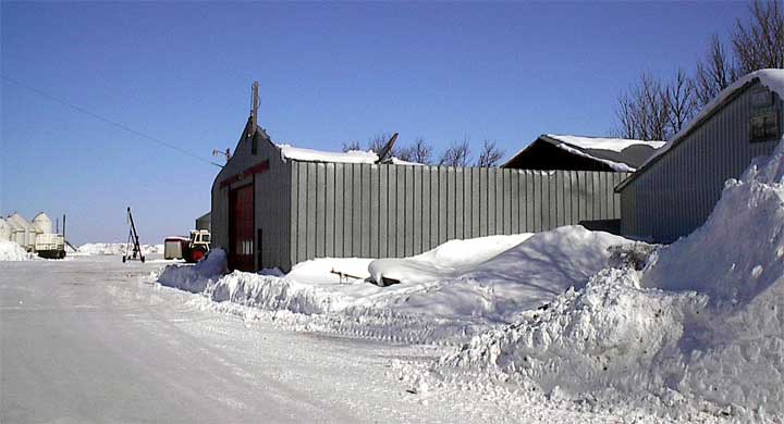 The building below is out at Phillip's Seeds, just west of Tisdale and its roof simply packed it in. Other farm buildings in the area have experienced similar damage but the threat is real and |