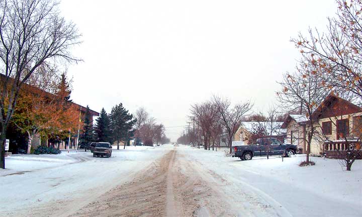 The snow cover has been a little more obvious around Naicam and we saw ski-doo tracks at Spalding Saturday night. But for us, therre was just the absence of colour as the bits of snow soaked up the landscape. It has snowed a little all day today and the landscape has turned white.