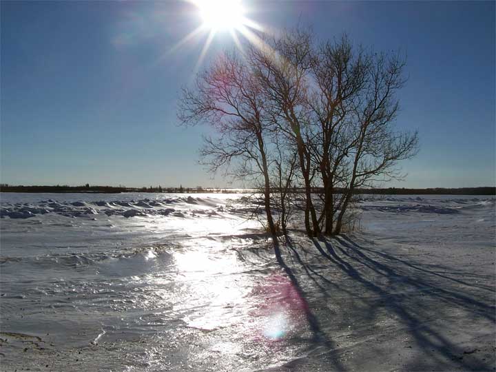 This part of Saskatchewan is not that different from the rest of the province which has lots of areas whch are not bald prairie but scrub and forested areas along the streams and creeks that drain the countryside. These pictures are taken along the little Doghide as it winds its way toward Tisdale and then beyond providing ample moisture to grow trees and a marvelous catch of snow and today, shadows.
